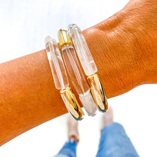 Neutral, Clear Marble & Gold Acrylic Tube Bamboo Bracelet