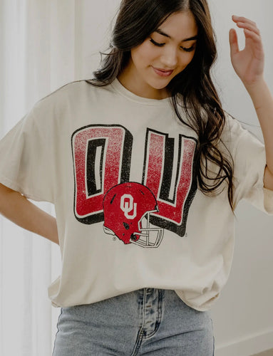 OU Sooners Helmet Fade Off White Thrifted Tee