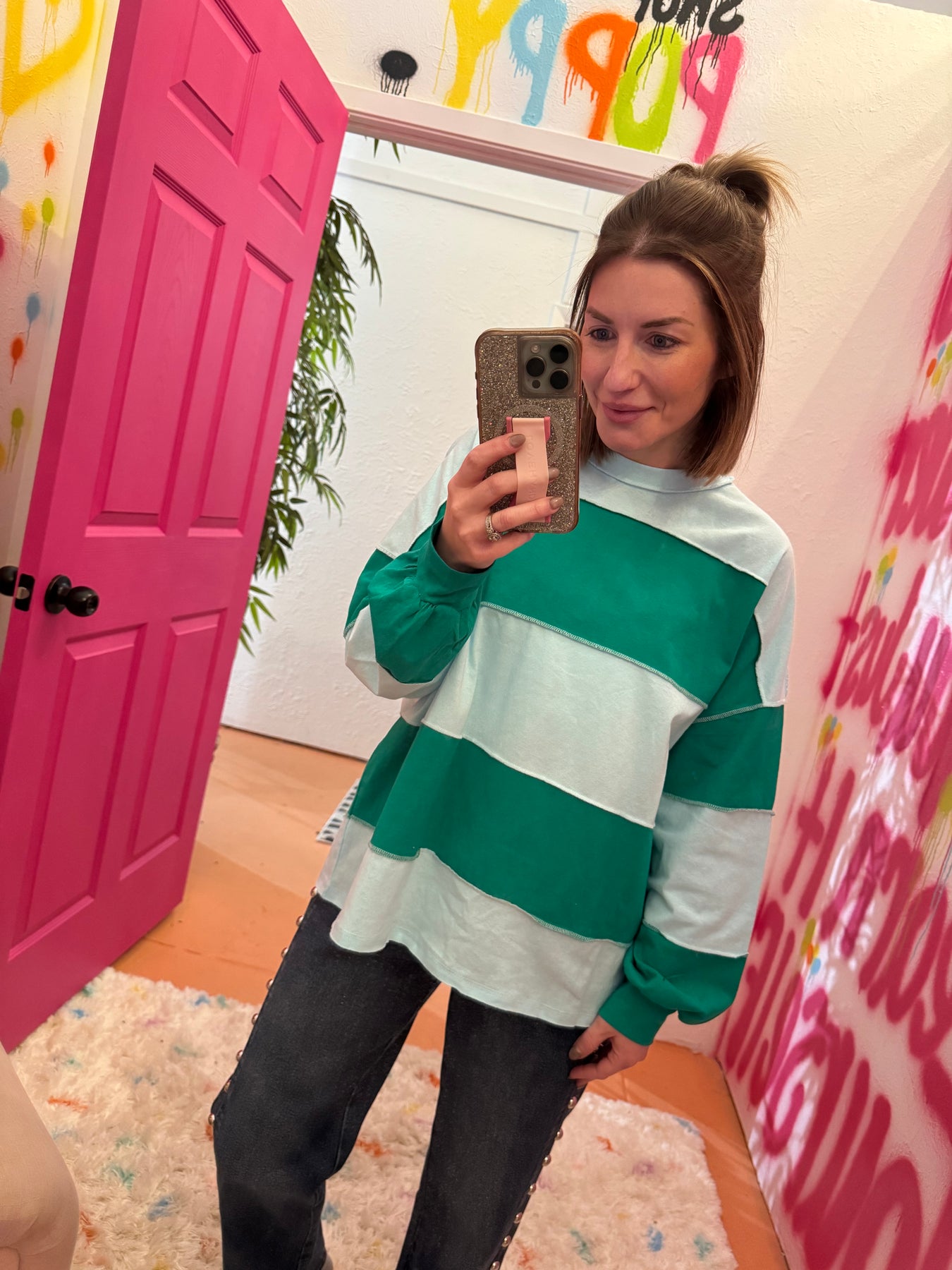 Contrast Panel Long Sleeve Slouchy Top: Sky Green