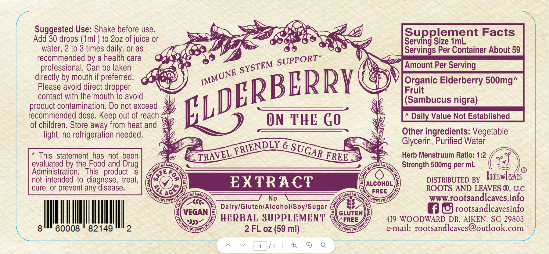 Elderberry Glycerin Extract- 2 oz