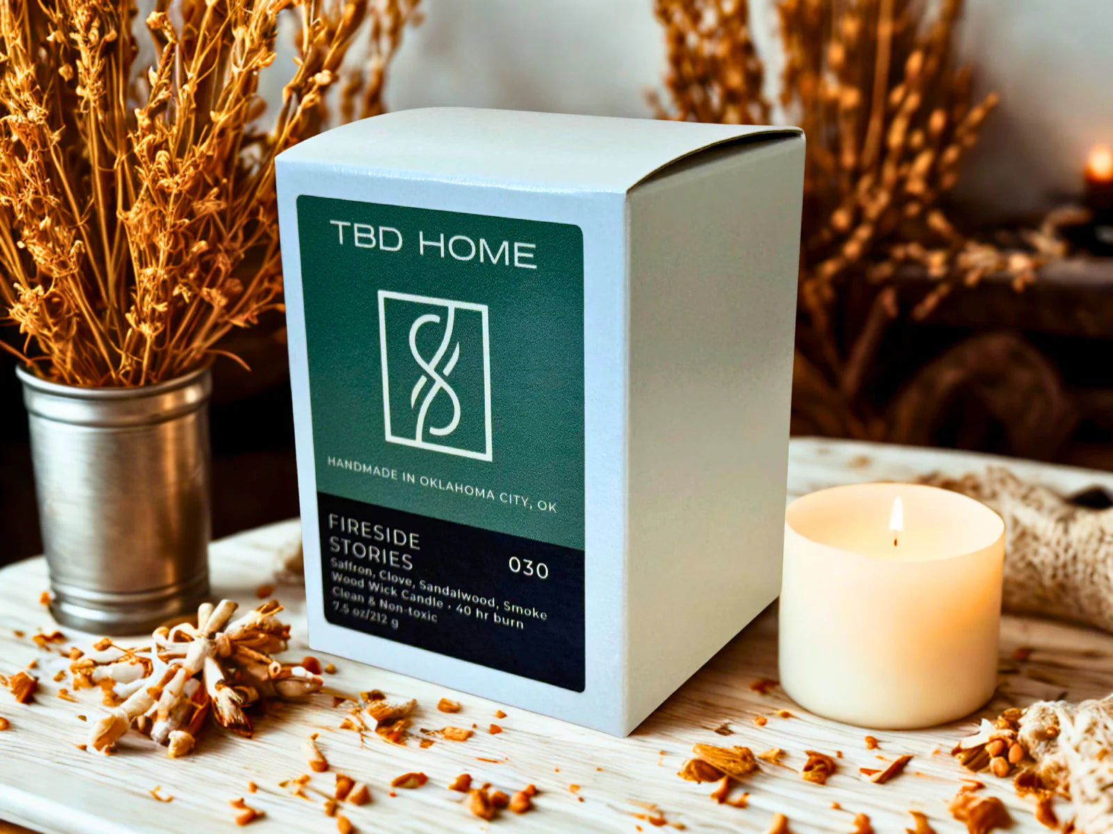 • Crackling Wooden Wick for a fireside flicker and soft ambiance