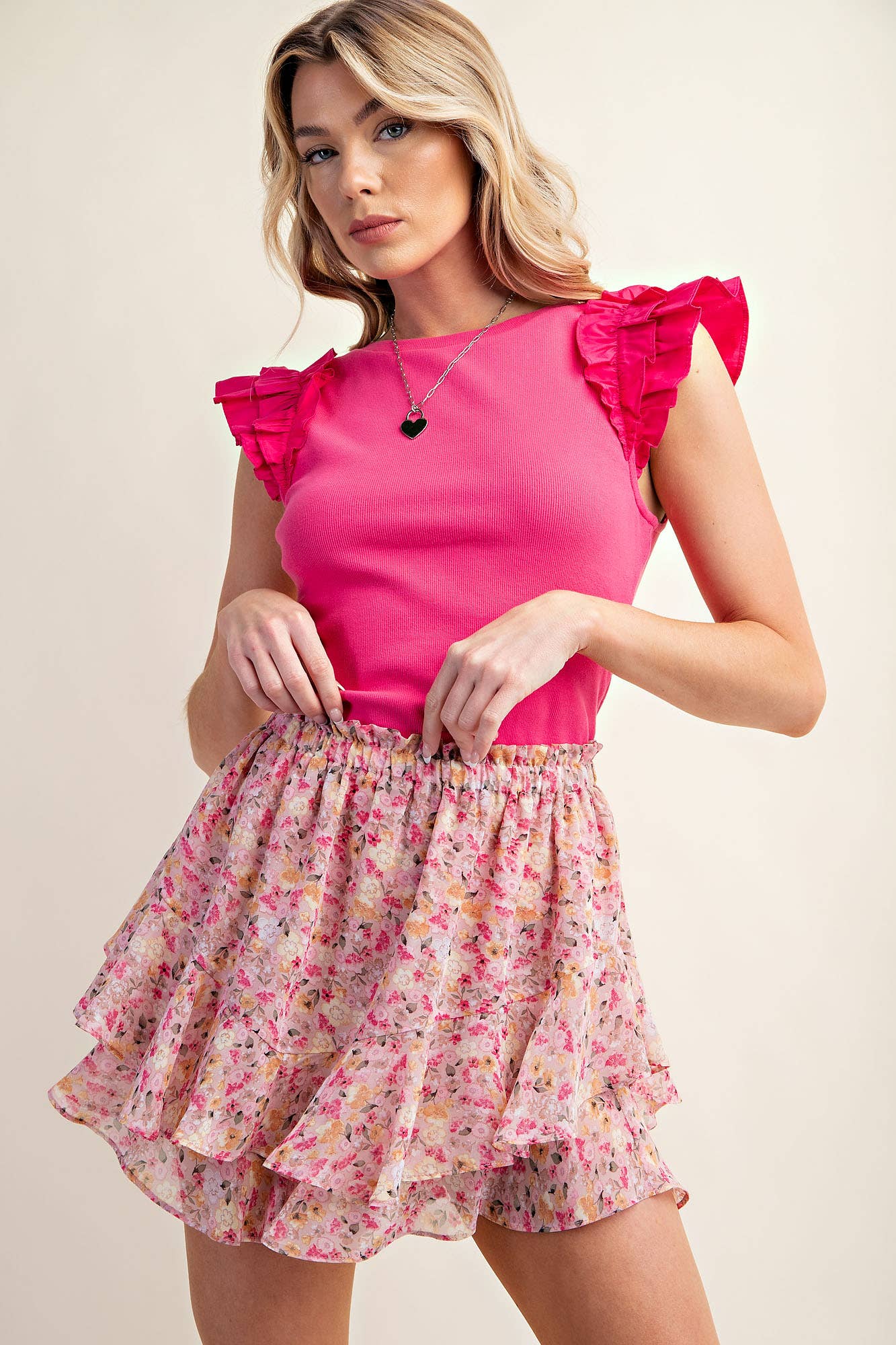CASUAL RUFFLED SLEEVES RIB TOP - Devin is 5'8", Bust-Waist-Hip 32-25-35, Wearing size S - Waist Length