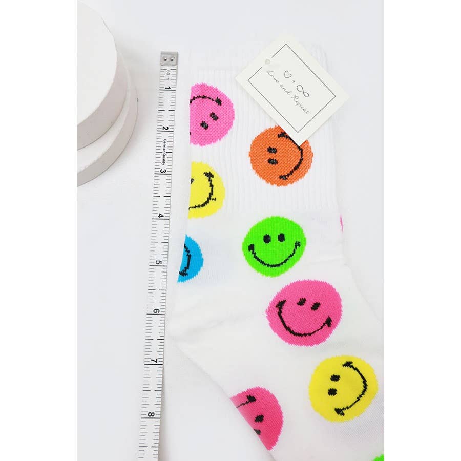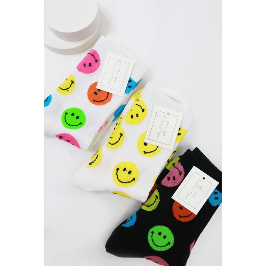Daily Comfy Smiley Socks -Fit women shoe sizes 5-9. Stretchable for better fit and Perfect for a season stock up. Soft and comfortable socks yet also Trendy and unique designs. -3 Color Smiley Socks Assorted -Brand: Love and Repeat