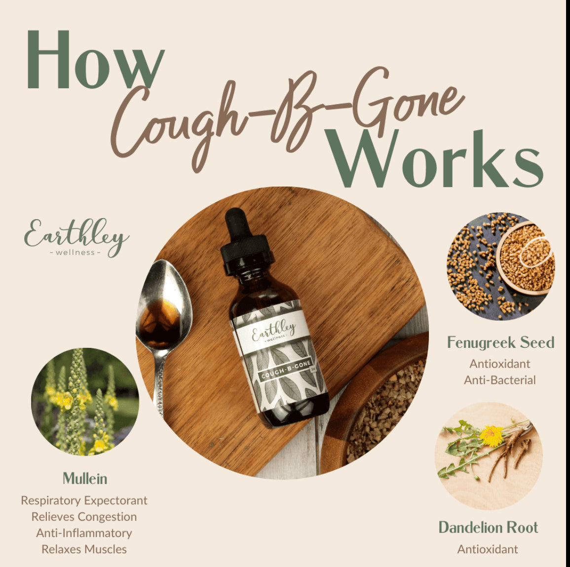 Cough-B-Gone is an herbal tincture created to help relieve colds, coughs, and congestion. Rather than use synthetic, chemical-tasting cough syrups, nourish your body and support the respiratory system with the natural power of herbs. Our kids (safe for ages 6 months+) are alcohol-free and taste great with no added sugar or sweeteners!