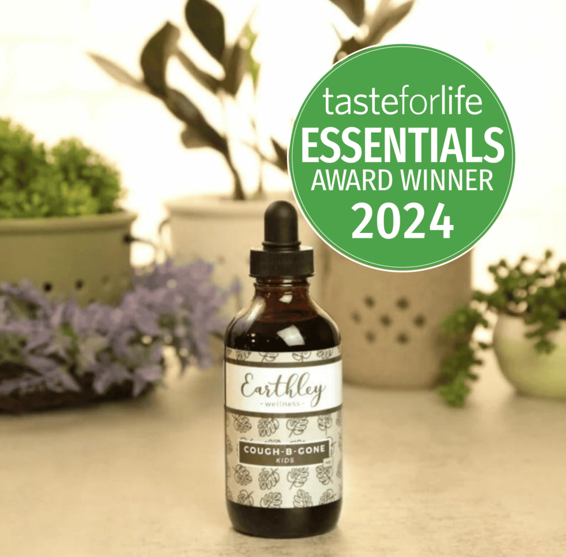 Earthley's Cough-B-Gone won Taste for Life's 2024 Immunity Essentials Awards. Taste for Life is the largest retail magazine for natural wellness.