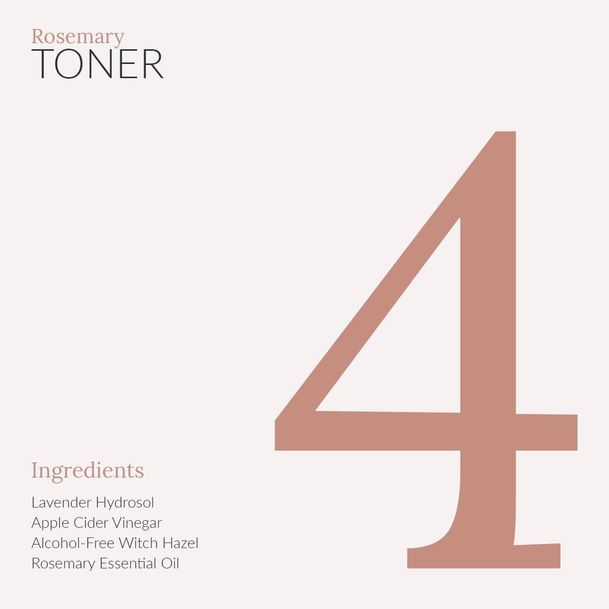 • Ingredients: Lavender Hydrosol*, Raw + Unfiltered Apple Cider Vinegar*, Alcohol-Free Witch Hazel*, Rosemary Essential Oil
