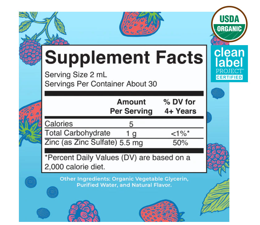 Support Your Kid’s Immune Function with this Easy-To-Take Liquid Zinc in Delicious Berry Flavor. Our liquid zinc is a no-nonsense way to ensure that your child receives an adequate amount of this essential mineral for their overall health and growth.