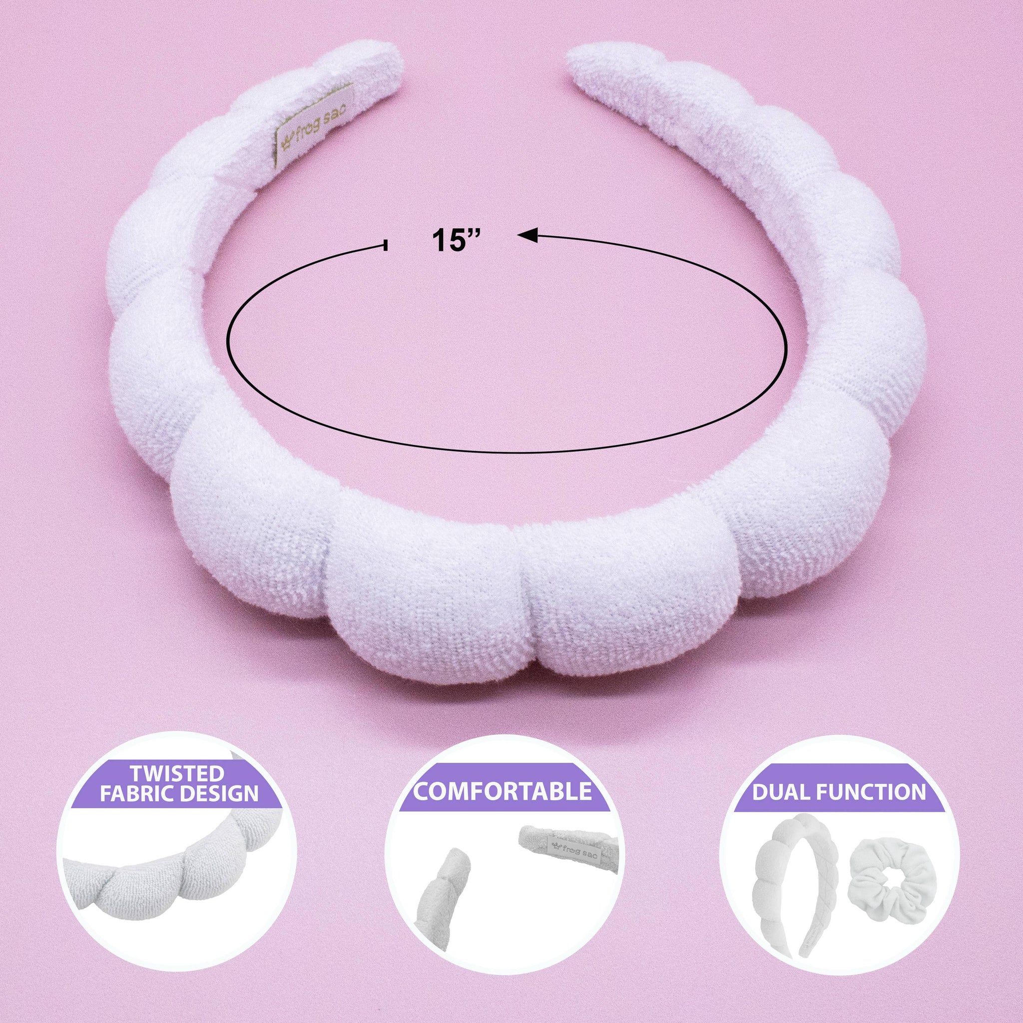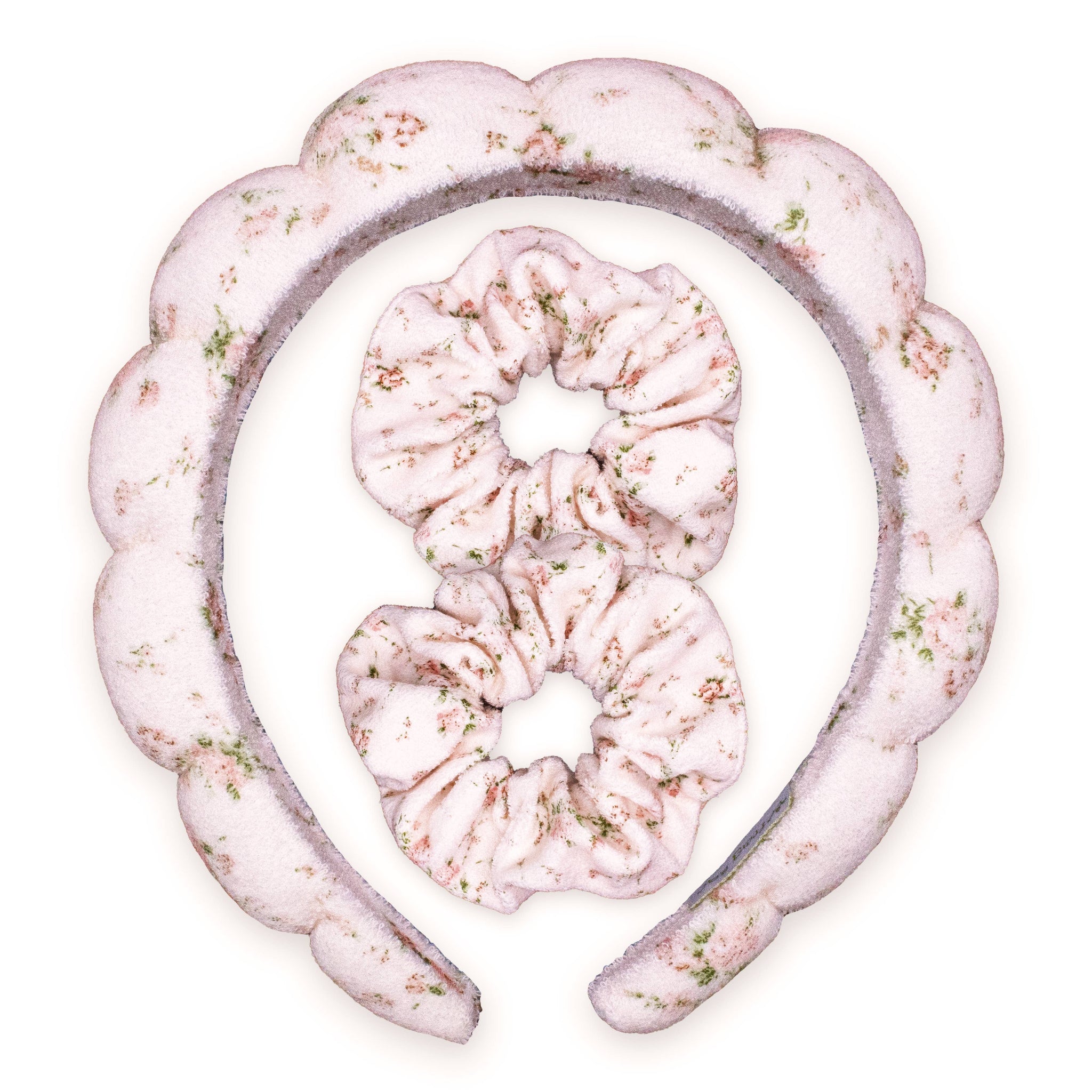 TREND ALERT! This headband is all over social media, and we've turned it into a set by adding matching terry cloth scrunchies that can be used to prevent water from running down your arms!