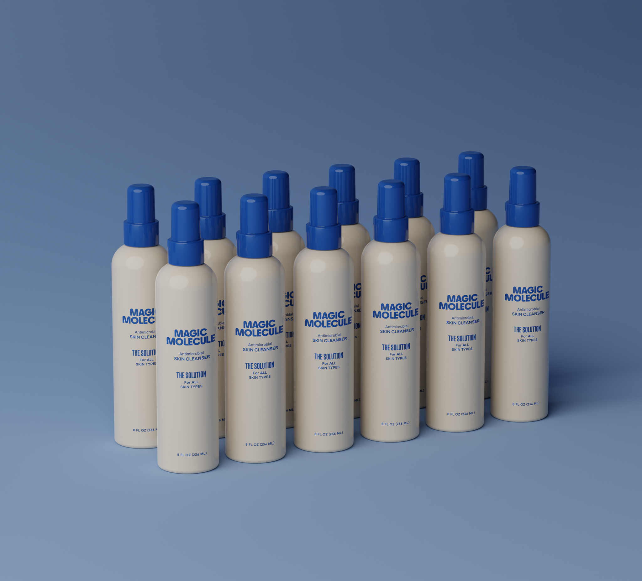 About Magic Molecule: Helps heal over 50 common skin ailments: Sunburns, eczema, cuts, scrapes, zits, itchy rashes, nail fungus. Powered by hypochlorous acid which is naturally produced by our white blood cells for healing. We patented a process to replicate it outside of the body in our FDA-cleared lab. Remove bacteria, reduce redness, minimize imperfections, and naturally calm skin.. Ingredients: Hypochlorous acid 0.018% Ionized water 99.918% Sodium chloride (salt) 0.06% Hypochlorite ion 0.004%